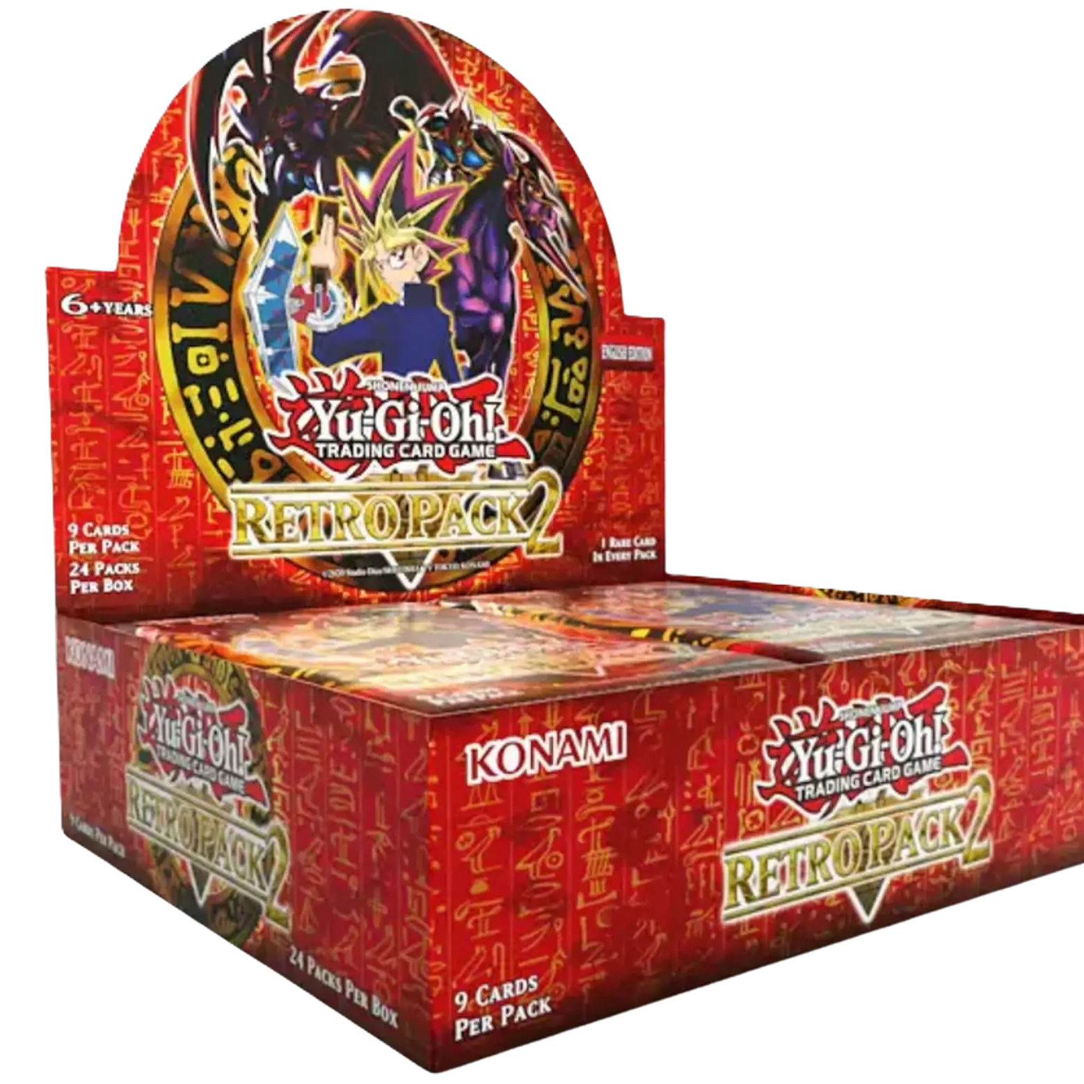 Each Yu-Gi-Oh! Retro Pack 2 Reprint Display contains 24 boosters packs, with each booster pack containing 9 cards.